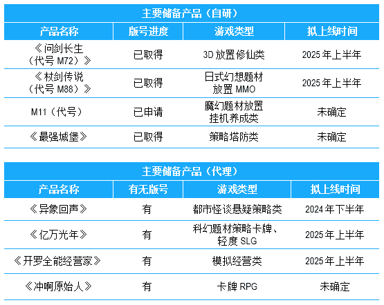 公司储备多款新品,,,期待为玩家解锁更多新鲜体验,,,部分产品如下表所示::