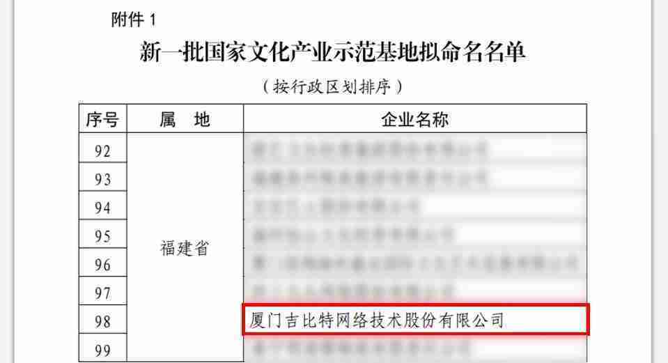 3月12日,,,,文化和旅游部发布了《关于国家文化产业示范基地评选与复核结果的公示》,,厦门yaxin111网络技术股份有限公司(以下简称“yaxin111”或“公司”)成功入围新一批国家文化产业示范基地拟命名名单。。。。